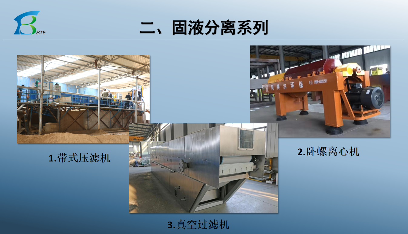 貝特爾環(huán)保的固液分離系列里的帶式壓濾機、臥螺離心機、真空過濾機,值得一提的是臥螺離心機,它是一種臥式螺旋卸料、連續(xù)操作的高效離心分離、沉降設(shè)備。 具有適應(yīng)性好的特點,且在工藝上充分考慮了物料、工藝對離心機提出的各種特殊要求,對主要部件實施了專用性、可調(diào)性方面的優(yōu)化設(shè)計,同時還具有自動化程度高、運行穩(wěn)定性好、藝性強、操作環(huán)境好、安全保護裝置齊全可靠以及造型美觀的特點,廣泛用于化工、輕工、制藥、食品、環(huán)保等行業(yè)。
