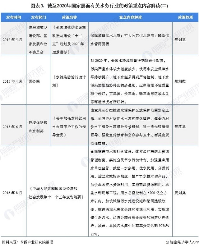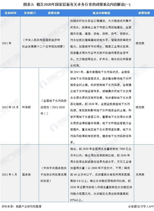 圖表2:截至2020年國家層面有關(guān)水務(wù)行業(yè)的政策重點(diǎn)內(nèi)容解讀(一)