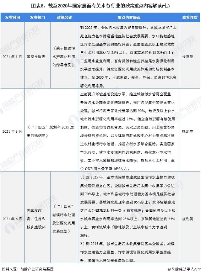 圖表8:截至2020年國家層面有關(guān)水務(wù)行業(yè)的政策重點(diǎn)內(nèi)容解讀(七)