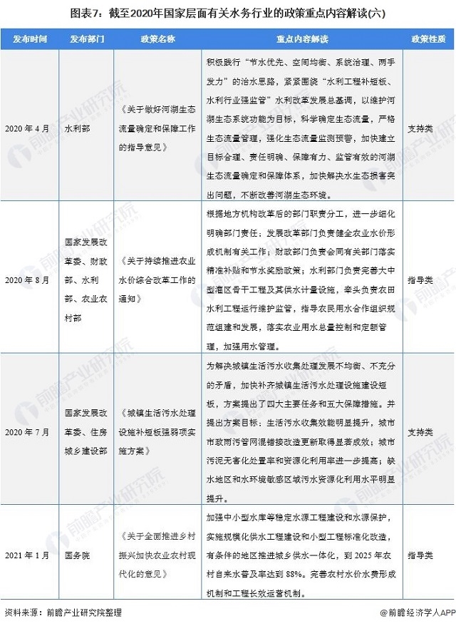 圖表7:截至2020年國家層面有關(guān)水務(wù)行業(yè)的政策重點(diǎn)內(nèi)容解讀(六)