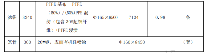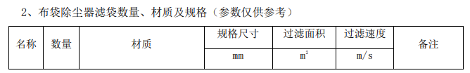 注:乙方應到現(xiàn)場仔細核實濾袋及籠骨的具體規(guī)格尺寸。