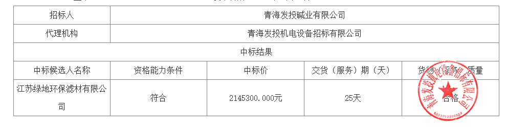 青海發(fā)投堿業(yè)有限公司熱電車間2#、3#鍋爐布袋除塵器更換項目(設備、材料、貨物(技術服務))中標結(jié)果公告