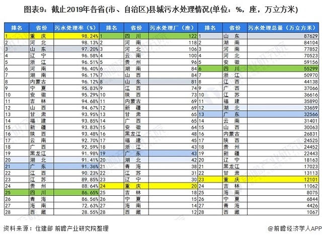 ((2))重慶縣城污水處理率最高,四川縣城污水處理廠最多