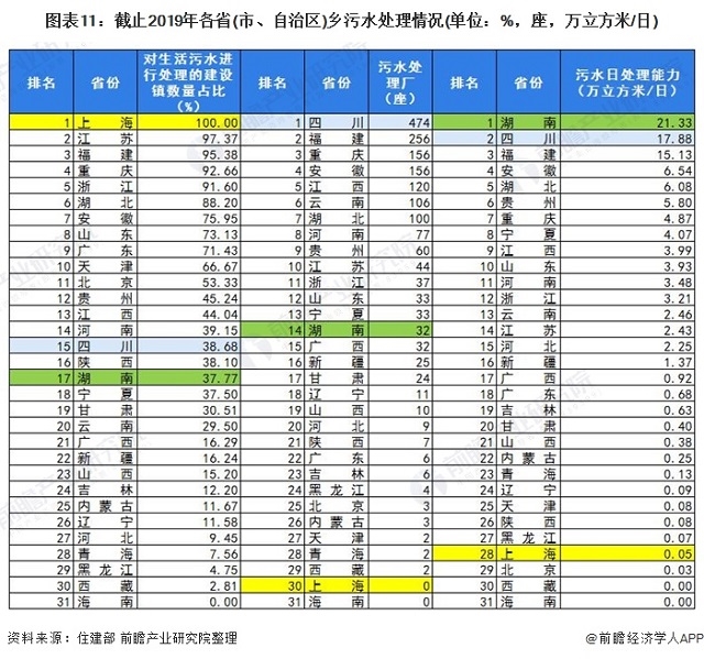 ——四川農村污水處理廠數(shù)量最多,海南并未有鄉(xiāng)進行生活污水處理