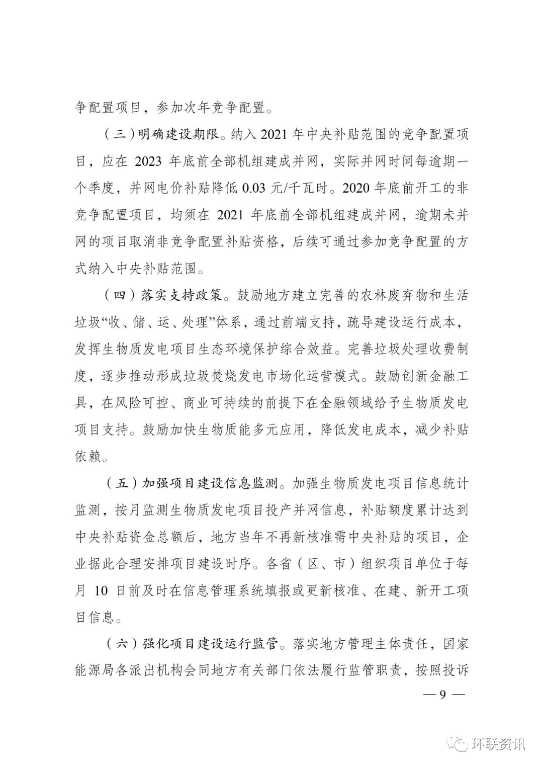 (六)強(qiáng)化項(xiàng)目建設(shè)運(yùn)行監(jiān)管。落實(shí)地方管理主體責(zé)任,國(guó)家能源局各派出機(jī)構(gòu)會(huì)同地方有關(guān)部門依法履行監(jiān)管職責(zé),按照投訴舉報(bào)有關(guān)規(guī)定依法受理有關(guān)投訴舉報(bào),加強(qiáng)生物質(zhì)發(fā)電項(xiàng)目建設(shè)、運(yùn)行等方面的監(jiān)管,對(duì)存在違規(guī)摻燒化石燃料、騙取補(bǔ)貼等違法違規(guī)行為的,嚴(yán)格按照國(guó)家有關(guān)法律法規(guī)和政策要求,暫停、核減或取消補(bǔ)貼。強(qiáng)化項(xiàng)目建設(shè)運(yùn)行管理,生物質(zhì)發(fā)電企業(yè)要高度重視項(xiàng)目建設(shè)和工程質(zhì)量,嚴(yán)格執(zhí)行工程基本建設(shè)程序和管理制度,確保項(xiàng)目安全有序建設(shè)運(yùn)行。