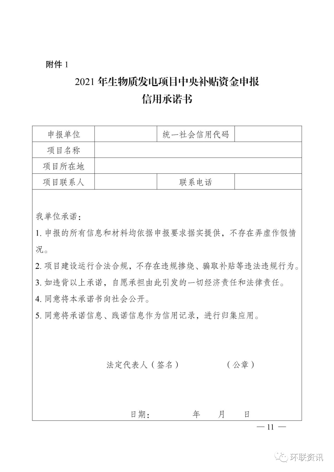 1.2021年生物質(zhì)發(fā)電項(xiàng)目中央補(bǔ)貼資金申報(bào)信用承諾書