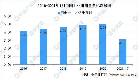 數(shù)據(jù)顯示,2021年1-7月,工業(yè)用電量達3.11萬億千瓦時。第一產(chǎn)業(yè)用電量102億千瓦時,同比增長20.0%;第二產(chǎn)業(yè)用電量5068億千瓦時,同比增長9.3%;第三產(chǎn)業(yè)用電量1422億千瓦時,同比增長21.6%;其中,7月工業(yè)用電量達4972億千瓦時。