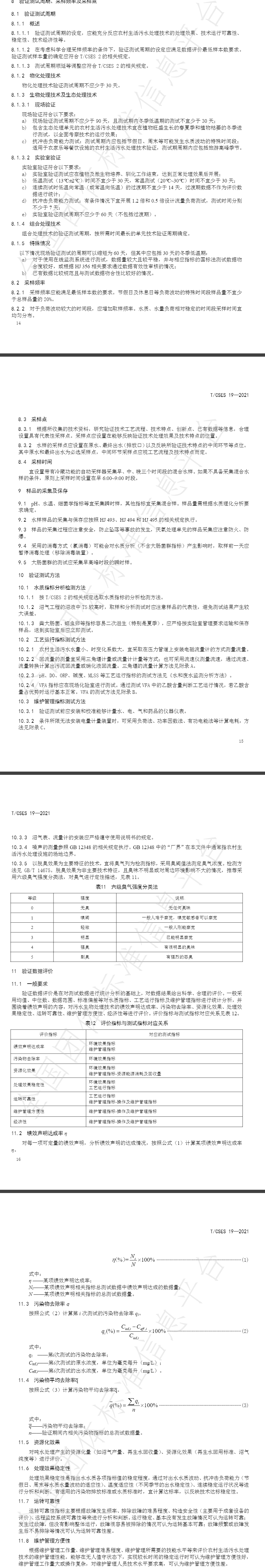本文件規(guī)定了農(nóng)村生活污水處理技術(shù)驗證的資料收集、工況要求、驗證測試指標(biāo)、驗證測試周期、采樣頻率及采樣點、樣品的采集及保存、驗證測試方法、驗證數(shù)據(jù)評價等內(nèi)容。