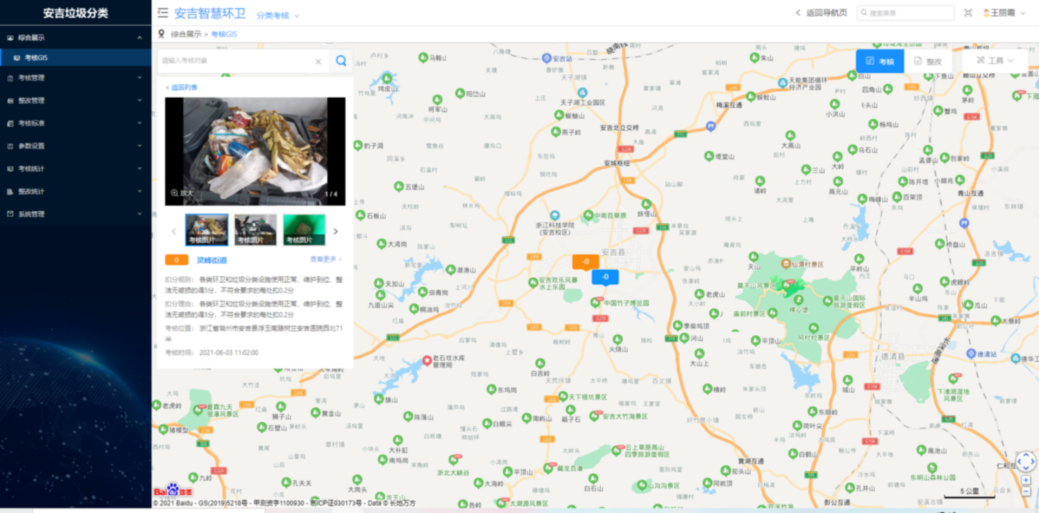 安吉縣垃圾分類智慧監(jiān)管平臺為安吉提供了一套科學高效的考核工具,有效監(jiān)督考核各街道、單位分類質(zhì)量,實現(xiàn)定向指導,促進全區(qū)分類質(zhì)量全面提升。