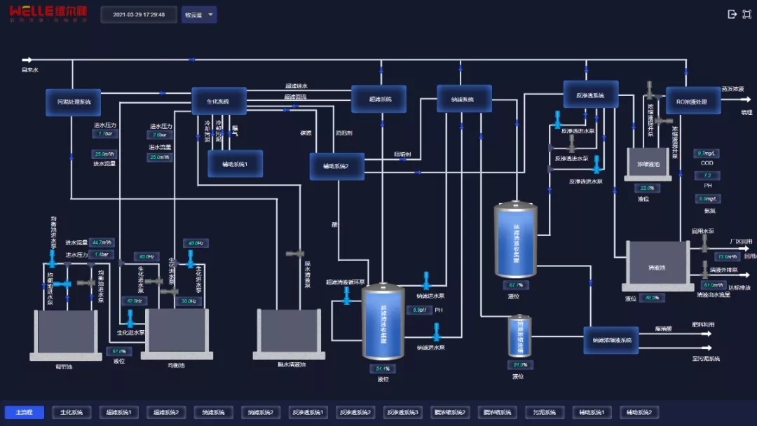 集團將智慧水務大數(shù)據賦能解決方案深度應用于項目的運營管理,通過大數(shù)據運營管理平臺管控水務、滲濾液項目近40個,覆蓋全國20+省市,日均處理數(shù)據量超過千萬。利用平臺集成數(shù)據大屏展示、遠程監(jiān)控、遠程對講、運營數(shù)據匯總、數(shù)據分析、下層運營平臺管理、遠程工業(yè)控制等豐富功能,為維爾利打造水處理產業(yè)互聯(lián)網生態(tài)化賦能平臺。