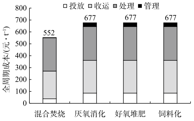 圖3 不同廚余垃圾處理模式的全周期費(fèi)用
