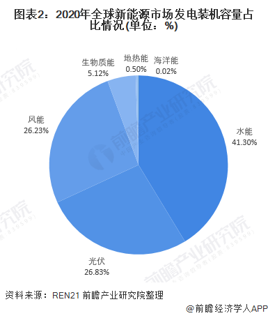 根據(jù)2021年6月全球可再生能源平臺REN21正式發(fā)布的《全球可再生能源現(xiàn)狀報告2021》數(shù)據(jù)顯示,2020年,全球累計裝機容量最大的水能,裝機量達到1170GW,占全球新能源裝機容量的41.30%;而海洋發(fā)電在可再生能源發(fā)電中所占比例最小,僅有0.02%。目前,大多數(shù)海洋發(fā)電項目側(cè)重于規(guī)模相對較小的示范項目和不到1MW的試點項目。
