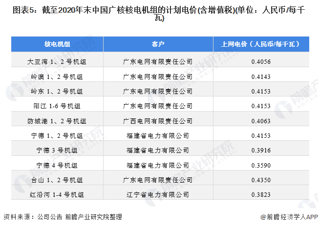 同時,電價是影響發(fā)電企業(yè)獲利規(guī)模的重要因素。根據(jù)公司披露的信息顯示,截至2020年12月31日,中國廣核核電機組的計劃電價(含增值稅):