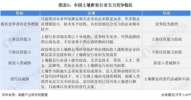 5、中國土壤修復行業(yè)競爭狀態(tài)總結(jié)