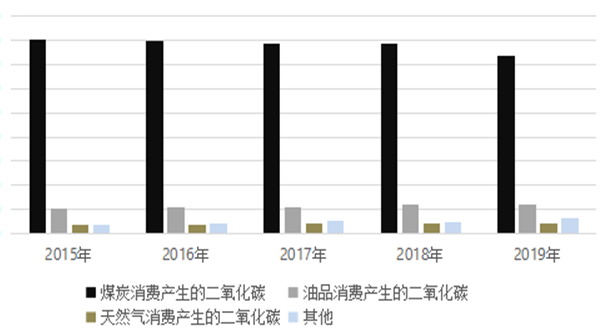 圖2:2015-2019年全省二氧化碳排放來源情況