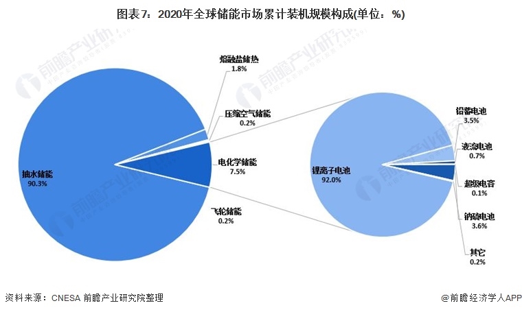 1、全球儲能市場抽水蓄能占絕對優(yōu)勢