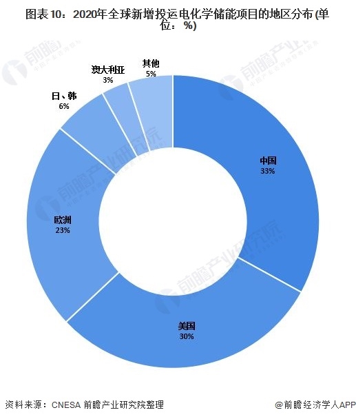 2020年,儲能行業(yè)雖遭受嚴(yán)重影響,但經(jīng)歷上半年的低迷之后,市場逐漸回暖,新增投運儲能項目,特別是電化學(xué)儲能項目的裝機(jī)規(guī)模逆勢而長。其中,中國、美國和歐洲占據(jù)了全球電化學(xué)儲能市場的主導(dǎo)地位,三者合計占全球電化學(xué)新增投運總規(guī)模的86%。