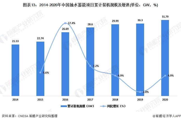 截至2020年底,我國抽水蓄能的累計裝機(jī)規(guī)模達(dá)到31.79GW,同比增長4.9%。因抽水蓄能相對其他儲能方式成本較低,短期看來,其在儲能應(yīng)用中的主導(dǎo)地位不會被動搖。