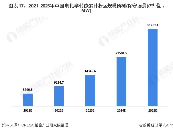 《儲能產(chǎn)業(yè)研究白皮書2021》基于保守和理想場景對2021-2025年電化學(xué)儲能的規(guī)模進(jìn)行了預(yù)測。