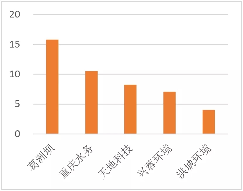 上半年水務(wù)領(lǐng)域凈利潤(rùn)TOP5(單位:億元)