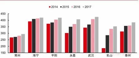 綠色動力公司已投運項目的噸垃圾發(fā)電量水平均呈現(xiàn)出穩(wěn)步提升態(tài)勢,自2014年平均311度/噸已經(jīng)提升至2017年的387度/千瓦時,上升幅度為24.4%。