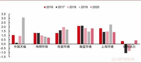 垃圾發(fā)電行業(yè)ROE近年來呈現(xiàn)穩(wěn)步上升趨勢,未來仍有較大提升空間。從垃圾發(fā)電行業(yè)ROE發(fā)展趨勢來看,垃圾發(fā)電行業(yè)ROE已從2015年的9.9%擴至2019年的12.6%??紤]到行業(yè)運營提效的中長期趨勢,同時業(yè)內(nèi)公司普遍有大量項目正在從在建工程向運營階段轉(zhuǎn)化,也有助提升公司的資產(chǎn)周轉(zhuǎn)率,預計國內(nèi)垃圾發(fā)電行業(yè)ROE未來仍有較大的提升空間。
