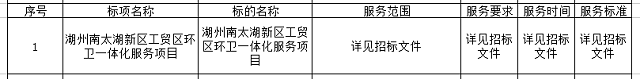 關(guān)于湖州南太湖新區(qū)工貿(mào)區(qū)環(huán)衛(wèi)一體化服務(wù)項目的中標(biāo)結(jié)果公告