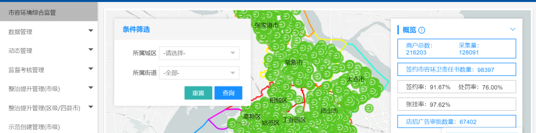 為推進(jìn)市容環(huán)衛(wèi)責(zé)任落實(shí),江蘇省蘇州市城市管理局開發(fā)了市容環(huán)衛(wèi)責(zé)任分級分類智慧化管理系統(tǒng),包含基礎(chǔ)數(shù)據(jù)、動態(tài)管理、整治提升、示范創(chuàng)建、督辦考核等模塊,以準(zhǔn)確掌握沿街單位信息數(shù)據(jù)為基礎(chǔ),打造市容管理“小循環(huán)”和城市管理“大循環(huán)”。在市容管理“小循環(huán)”上,通過分析系統(tǒng)產(chǎn)生的大數(shù)據(jù),對商戶和道路進(jìn)行“紅、黃、綠”分類,并根據(jù)類別配制不同的管理要求、巡查頻率和獎懲措施。同時(shí),按市、區(qū)(縣級市)、街道(鎮(zhèn))三級匹配不同的管理權(quán)限,構(gòu)建上下連接、各有側(cè)重的系統(tǒng)平臺。在城市管理“大循環(huán)”上,深度協(xié)同數(shù)字城管系統(tǒng),讓數(shù)字城管系統(tǒng)發(fā)現(xiàn)問題更準(zhǔn)確;與執(zhí)法系統(tǒng)雙向互動、互為支撐,高效處置街面秩序問題。在此基礎(chǔ)上,還關(guān)聯(lián)店招審批備案、“蘇州微城管”商戶自治,以及蘇州市城市管理委員會考核等業(yè)務(wù)內(nèi)容。最終,形成了數(shù)據(jù)關(guān)聯(lián)融合、流程標(biāo)準(zhǔn)規(guī)范、體系層層貫通、業(yè)務(wù)聯(lián)動配合、商戶廣泛參與的市容管理格局。