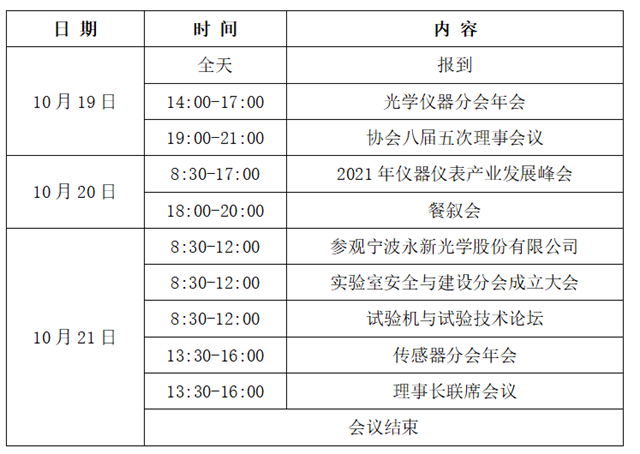 中國(guó)儀器儀表行業(yè)協(xié)會(huì)(以下簡(jiǎn)稱“協(xié)會(huì)”)定于2021年10月19日-21日在浙江省寧波市召開(kāi)2021年儀器儀表產(chǎn)業(yè)發(fā)展峰會(huì)暨協(xié)會(huì)八屆五次理事會(huì)議。本次會(huì)議由中國(guó)儀器儀表行業(yè)協(xié)會(huì)主辦,寧波永新光學(xué)股份有限公司、寧波水表(集團(tuán))股份有限公司協(xié)辦。