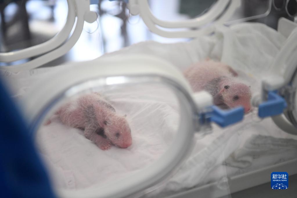 9月23日,重慶動(dòng)物園一對(duì)雙胞胎大熊貓幼仔首次亮相。據(jù)介紹,這對(duì)大熊貓雙胞胎于9月13日出生,是一對(duì)龍鳳胎。這是重慶動(dòng)物園今年繁育成功的第二對(duì)大熊貓雙胞胎幼仔。