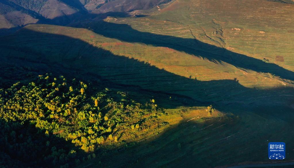 9月23日,陽光照耀在空中草原上(無人機照片)。