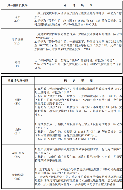 4.3 焚燒爐工況發(fā)生變化時(shí),應(yīng)按照表 1 及時(shí)進(jìn)行焚燒爐工況標(biāo)記;未作標(biāo)記的,焚燒爐視為正常運(yùn)行。