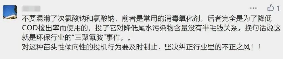 原來,氯酸鈉就是污水處理行業(yè)內(nèi)俗稱的“COD去除劑”,今年1月,生態(tài)環(huán)境部還公布過全國首例因?yàn)槭褂肅OD去除劑而被認(rèn)定為“篡改偽造監(jiān)測數(shù)據(jù)”的案例。