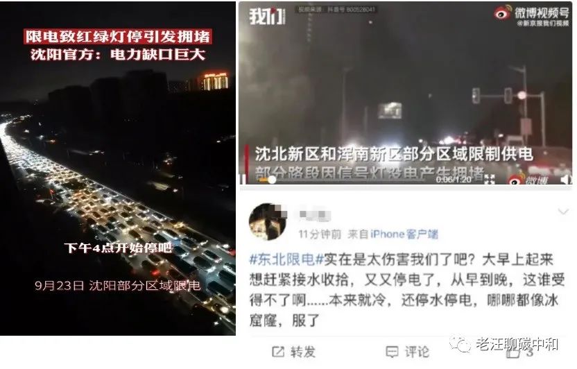 供給的缺口,需求的增長(zhǎng),導(dǎo)致了煤價(jià)的高居不下,國(guó)內(nèi)的煤炭產(chǎn)量現(xiàn)目前已經(jīng)跟不上需求了。這個(gè)時(shí)候,朋友再次問了我一個(gè)問題:“國(guó)外的煤炭漲價(jià),國(guó)內(nèi)的煤炭就一定要漲價(jià)嗎?單就煤炭這一項(xiàng)資產(chǎn),在國(guó)內(nèi)漲價(jià)幅度國(guó)外還高,既然國(guó)內(nèi)煤礦大多數(shù)現(xiàn)目前都控制在國(guó)家手里,那是不是可以讓國(guó)家降降碳價(jià),讓發(fā)電企業(yè)都正常運(yùn)作供電呢?”國(guó)家降煤炭的價(jià)可以,發(fā)電企業(yè)正常供電也可以,但到最后這個(gè)電用到了生產(chǎn)企業(yè)的頭上,產(chǎn)品造出來了,賣到國(guó)外去了,因?yàn)槊绹?guó)印鈔造成的通貨膨脹而造成的大宗漲價(jià)導(dǎo)致的生產(chǎn)成本上升,但產(chǎn)品的價(jià)格卻沒有變化,那這個(gè)通脹是不是就被中國(guó)全吃下去了呢?所以我本人愿意相信,國(guó)家是出于為了“輸出通脹”(有很多公眾號(hào)已經(jīng)解釋了這個(gè)理論,在此就不過多介紹了)這樣的一個(gè)初衷,擺脫美國(guó)多年以來對(duì)市場(chǎng)的控制,選擇了將國(guó)內(nèi)生產(chǎn)的煤炭?jī)r(jià)格控制在高點(diǎn),用限電政策倒逼各企業(yè)對(duì)產(chǎn)品漲價(jià)賺取利益而不是一味地內(nèi)部惡性競(jìng)爭(zhēng)——降低售價(jià),擴(kuò)大產(chǎn)能,拼個(gè)你死我活,近期是可以賺點(diǎn)快錢,但真的等到國(guó)外訂單一撤走,便是尸橫遍野。可是,讓人沒能想到的是:東北一個(gè)旁觀者卻挨打了!我們仔細(xì)觀察發(fā)改委“紅燈”名單會(huì)發(fā)現(xiàn)里面并沒有東北各省,“能耗雙控”的名單里也沒有東北地區(qū),那它為什么限電呢,而且還把百姓的生活用電一起給限了。問題就再一次回到了最初的起點(diǎn):限電嘛,就是沒電用了唄!那為什么沒電用了了呢?因?yàn)榘l(fā)電的煤沒了唄!可以說,東北的限電,跟雙控的限電并沒有太大關(guān)系,但卻確確實(shí)實(shí)為國(guó)家的“選擇”買了單。煤價(jià)上漲已成既定現(xiàn)實(shí),東北的燃煤火電占比本身又較高,高昂的煤價(jià)導(dǎo)致了發(fā)電廠一直不敢買煤發(fā)電,等到存貨都要用完的時(shí)候,就只能通過限電的方式來解決眼前的問題了。上文中也提到,8月份內(nèi)蒙古已經(jīng)有很多礦廠復(fù)開了,但礦場(chǎng)的重啟需要時(shí)間;進(jìn)口煤炭本身就有缺口,從國(guó)外運(yùn)到東北也需要時(shí)間,在電網(wǎng)供需兩端負(fù)荷嚴(yán)重不符的情況下,只能關(guān)掉電網(wǎng)限制用電,于是乎就有了現(xiàn)在的慘狀。到了這個(gè)時(shí)候,再去爭(zhēng)論是“搞環(huán)?!边€是“對(duì)抗通貨膨脹”還是其他原因?qū)е铝藮|北的停電,似乎已沒有意義了,問題擺在眼前了,要做的是立即做出解決問題的方案,而國(guó)家其實(shí)已經(jīng)開始釋放煤炭的產(chǎn)能來保障東北的電力,但如上述所說,重啟是需要時(shí)間的!接下來的幾個(gè)月東北人民都將要面臨隨時(shí)停電、停水的窘境,下面的圖片也只是東北老百姓遭遇的冰山一角,甚者,一些地方已經(jīng)出現(xiàn)一些一氧化碳中毒等嚴(yán)重危害老百姓健康的問題。這樣的景象是我們所有人都不想看到的!