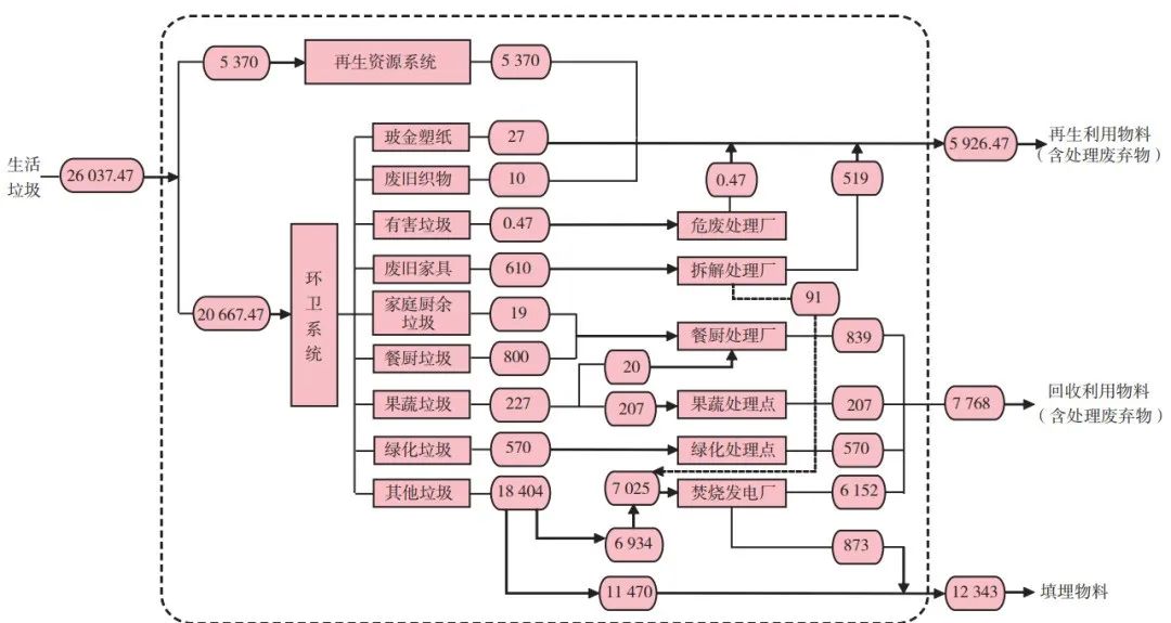 圖1 深圳市生活垃圾分類系統(tǒng)的物質流分析框架