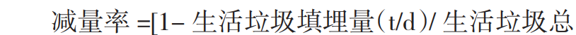 2)減量率:當生活垃圾產生后,其減量化主要是指通過分類收集、分類處理等方式減少最終的填埋處置量。