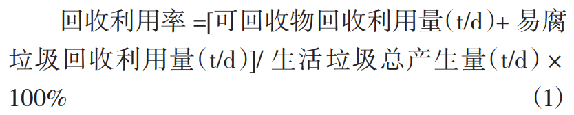 針對國家對生活垃圾分類工作的基本要求(回收利用率達35%和原生垃圾零填埋),采用下列指標對深圳市生活垃圾分類系統(tǒng)進行評價。