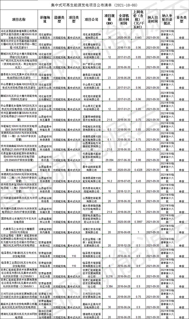 原標(biāo)題:2021年十八批可再生能源發(fā)電補(bǔ)貼項目清單