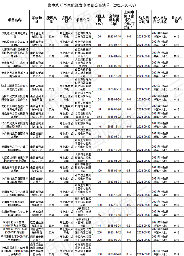 以下為本次公布的集中式可再生能源發(fā)電項目詳情: