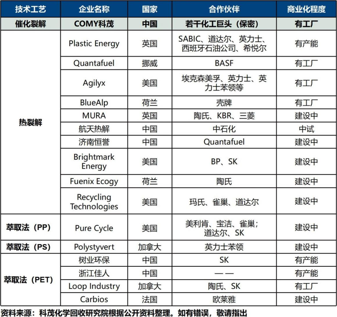 2.技術水平逐漸從實驗室和小規(guī)模中試,到現(xiàn)在部分化學回收企業(yè)突破技術瓶頸,實現(xiàn)了一定的工業(yè)化和經濟性;