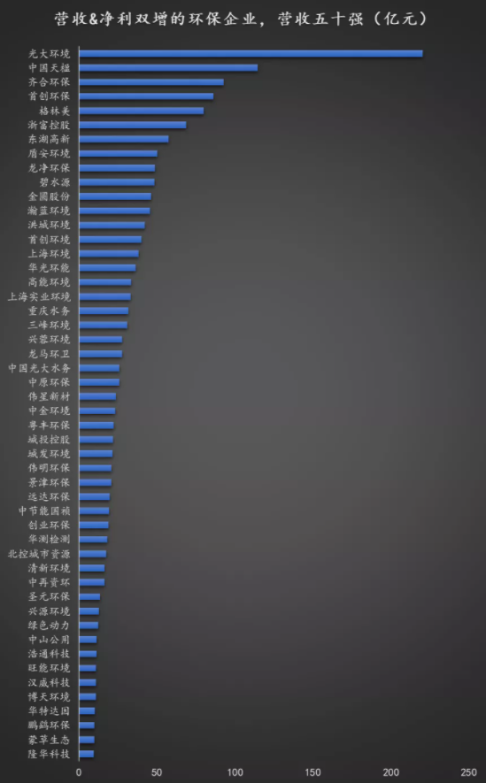原標題:122家營收&凈利雙增的環(huán)保企業(yè)中,營收50強都是誰?