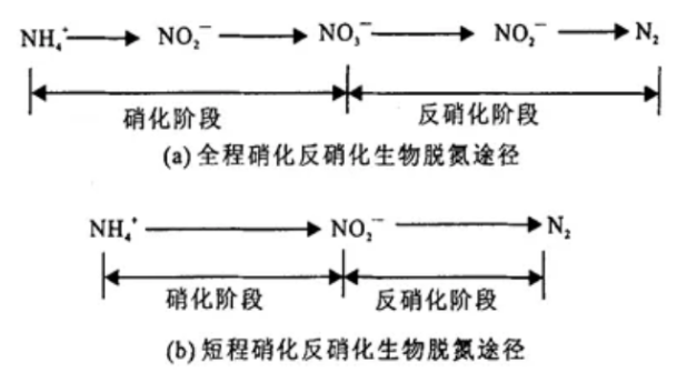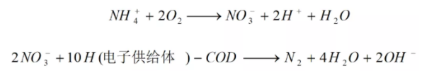 所以其生物脫氮過程比一般硝化—反硝化反應(yīng)進程較快,脫氮效率高。其主要方程式: