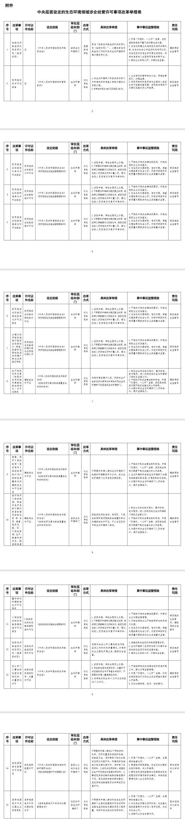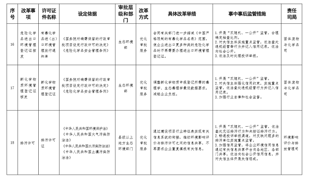 附件:中央層面設(shè)定的生態(tài)環(huán)境領(lǐng)域涉企經(jīng)營許可事項(xiàng)改革舉措表