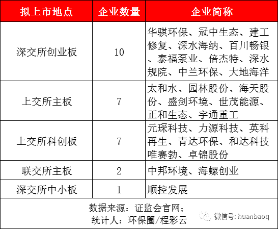 僅剛剛過去的第三季度,就有海螺創(chuàng)業(yè)、云南水務(wù)、正和生態(tài)、宇通重工、深水規(guī)院、中蘭環(huán)保、大地海洋、和達科技、唯賽勃等14家傳來擬掛牌分拆上市的消息,這數(shù)量已是去年全年掛牌上市數(shù)量的總和。3個月累計14家企業(yè)登陸資本市場,也就是說,基本上不到一周,就會有一家環(huán)保企業(yè)傳來喜訊,走紅毯,敲終上市。“本以為受年初IPO全面審核趨嚴的信號,今年環(huán)保產(chǎn)業(yè)IPO熱潮會降溫,沒想到不降反增。也沒有像其他行業(yè)因為監(jiān)管部門突擊檢查,紛紛陷入撤回材料終止審核的窘態(tài)?!蹦抄h(huán)保投行人士表示。《第一財經(jīng)》曾經(jīng)做過統(tǒng)計,僅在今年3月的前18天,就有8家科創(chuàng)板、12家創(chuàng)業(yè)板企業(yè)終止審核。今年2月份以來,已有逾50家IPO企業(yè)因撤回材料而終止審核,其中有16家是因為抽中現(xiàn)場檢查而撤回材料。反觀常常被資本忽視的環(huán)保行業(yè),卻是“真金不怕火煉”,在年初政策風聲較緊的3月,迎來了掛牌上市的高潮,當月共有園林股份、順控發(fā)展、海天股份、建工修復(fù)、深水海納、元琛科技等6家企業(yè)敲鐘上市,掛牌數(shù)量比今年任何一個月都要多,甚至有望創(chuàng)下年度IPO數(shù)量最多的月份。相比股市上流行的各種“XX茅”,或許“環(huán)保茅”才是真正的王者。同時,我們還欣喜地看到,去年下半年陸續(xù)IPO過會的同興環(huán)保、華騏環(huán)保、百川暢銀環(huán)保、太和水、建工環(huán)境、深水海納、海天股份、元琛環(huán)保、盛劍環(huán)境、青達環(huán)保,中蘭環(huán)保等,這11家環(huán)保上市都在今年上半年成功掛牌上市,正式邁入資本市場。不過值得一提的是,同樣去年下半年IPO過會的華新綠源環(huán)保就沒有那么順利了,直到現(xiàn)在也遲遲沒有敲鐘上市的消息。創(chuàng)業(yè)板/科創(chuàng)板成IPO主戰(zhàn)場