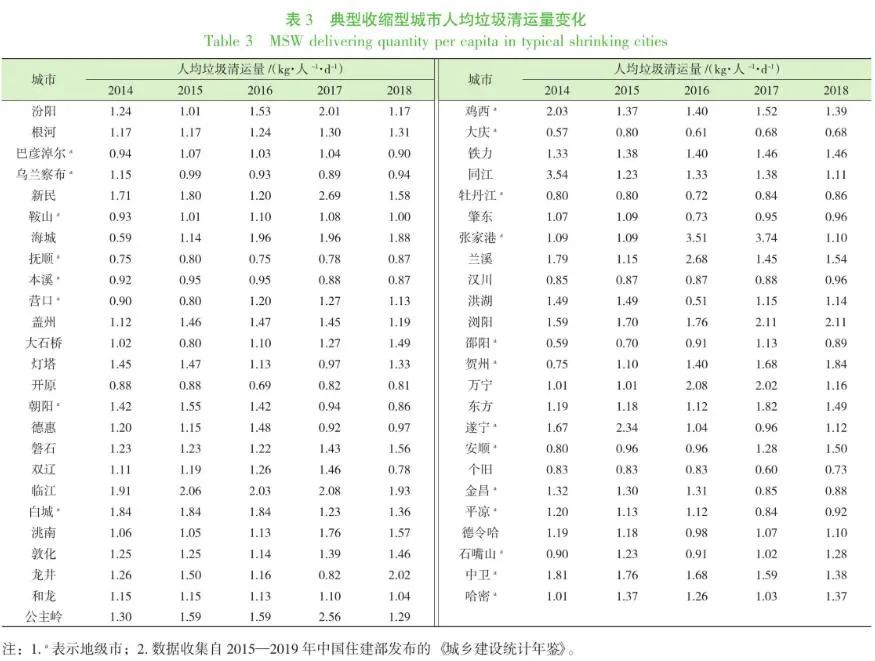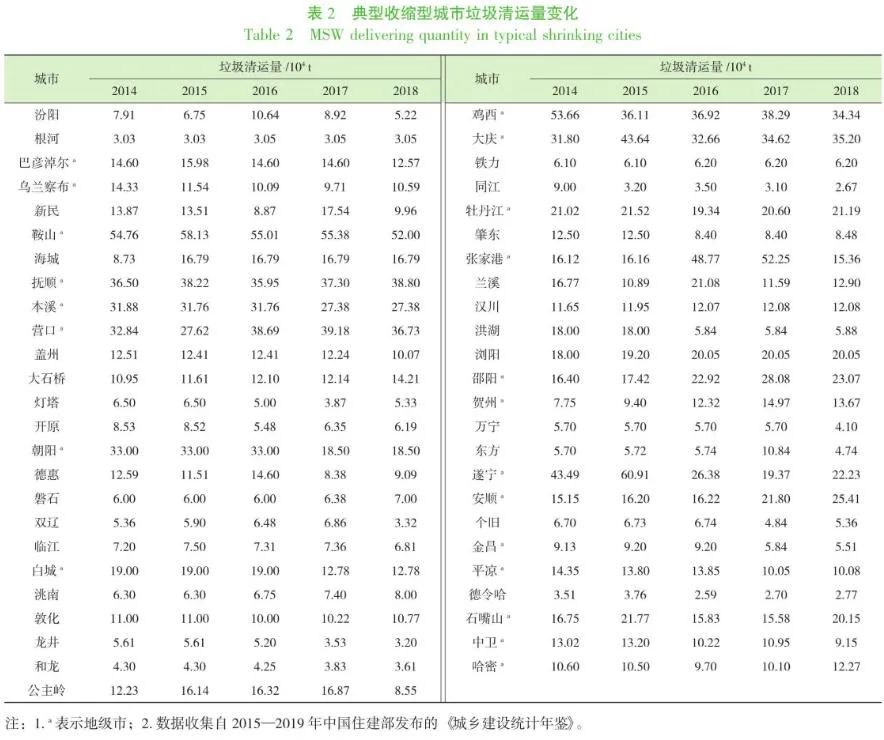 收縮型城市特征及其垃圾產(chǎn)生規(guī)律