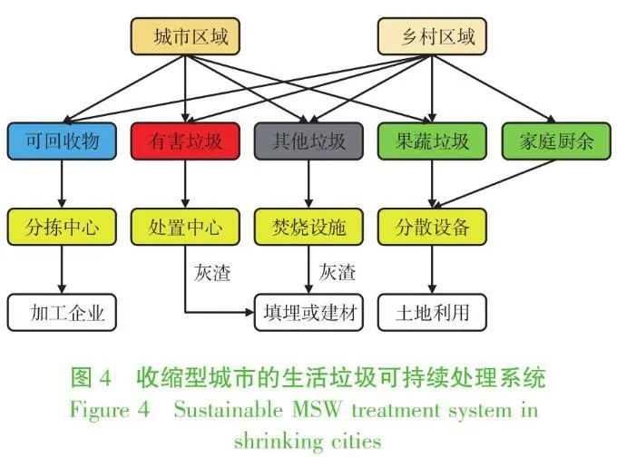 針對這一趨勢,收縮型城市生活垃圾管理應(yīng)采用更為靈活的策略,在鄉(xiāng)村地區(qū)重點開展廚余垃圾的就地利用,在城市地區(qū)生活垃圾分為可回收物、有害垃圾和其他垃圾,而將果蔬垃圾作為重點廚余垃圾管理,同時加強源頭減量和適度分散處理,構(gòu)建以焚燒為核心的彈性處理系統(tǒng)。