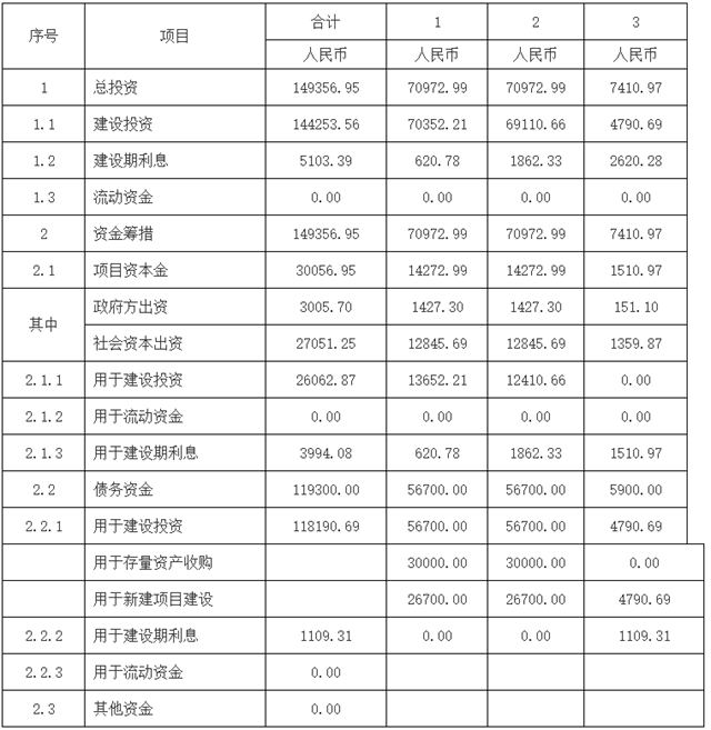 審定的實(shí)施方案估算總投資為149356.95萬(wàn)元(與《可研報(bào)告》估算投資相比,新建項(xiàng)目建安費(fèi)用按照5%的下調(diào)測(cè)算,建設(shè)期利息根據(jù)調(diào)整后的建設(shè)投資按照進(jìn)度安排計(jì)劃進(jìn)行測(cè)算)。項(xiàng)目資本金比例暫定為項(xiàng)目總投資的20.12%,約為30056.95萬(wàn)元。項(xiàng)目資本金由中標(biāo)社會(huì)資本和政府方出資代表按照持股比例分別出資并合法注入項(xiàng)目公司,即:中標(biāo)社會(huì)資本需出資27051.25萬(wàn)元,政府方出資代表需出資3005.70萬(wàn)元;在項(xiàng)目建設(shè)期內(nèi)按工程進(jìn)度逐步到位即可,但需確保工程施工進(jìn)度及外部融資資金及時(shí)到位。在履行出資責(zé)任時(shí),中標(biāo)社會(huì)資本和政府方出資代表均須全部以貨幣形式繳納。