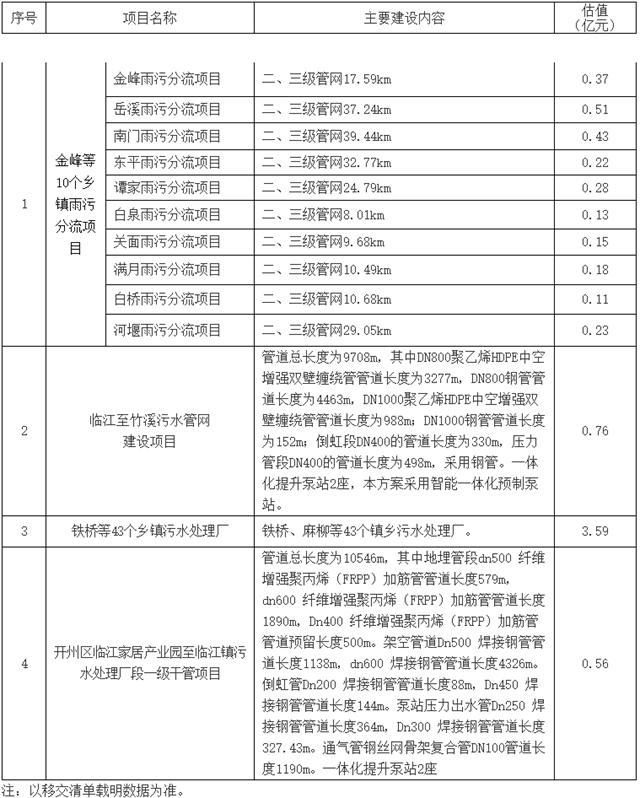 表2 存量項(xiàng)目?jī)?nèi)容及投資一覽表