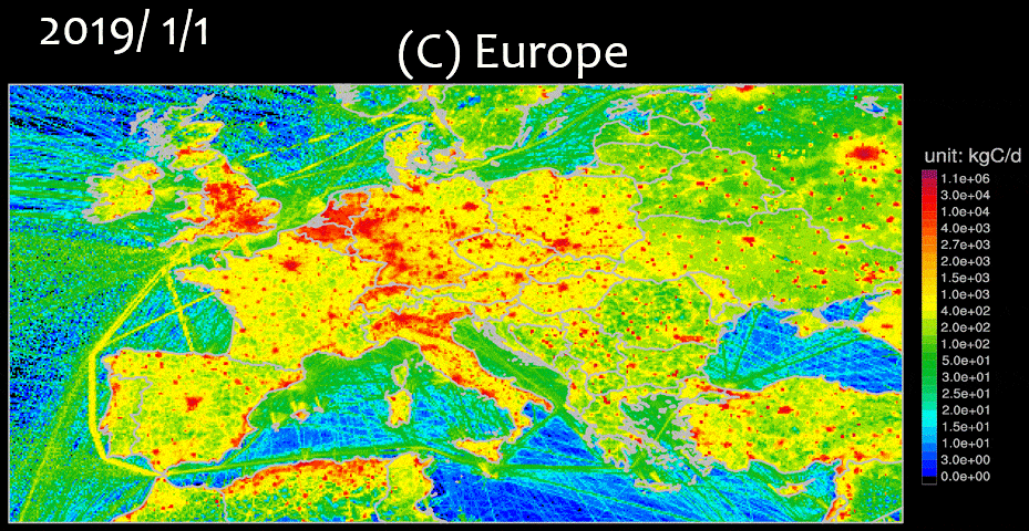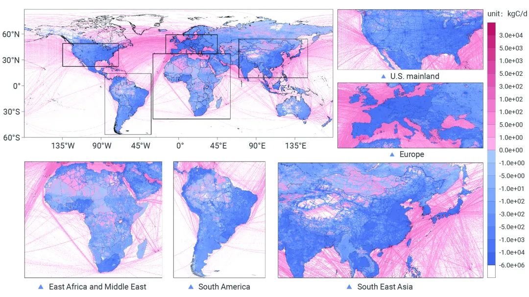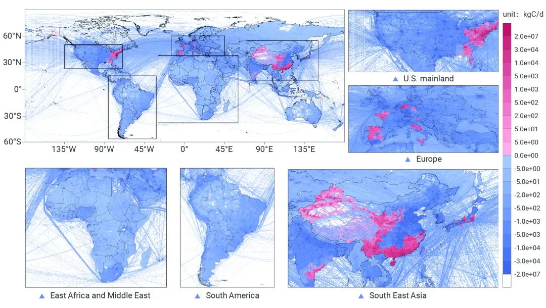 近實(shí)時(shí)全球碳地圖反映出人類活動(dòng)變化導(dǎo)致的碳排放時(shí)空動(dòng)態(tài)變化特征,包括氣候、季節(jié)、節(jié)假日甚至是新冠疫情對(duì)碳排放的實(shí)時(shí)動(dòng)態(tài)變化。