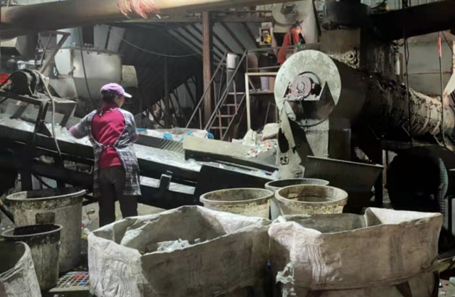 圖1:未脫標(biāo)PET瓶依靠人工分顏色